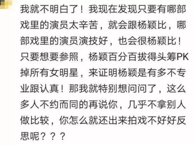 有的网友更是喊话说杨颖需要反思!毕竟一说到什么不敬业之类的消息,网友们都是要拉出来baby对比一番!