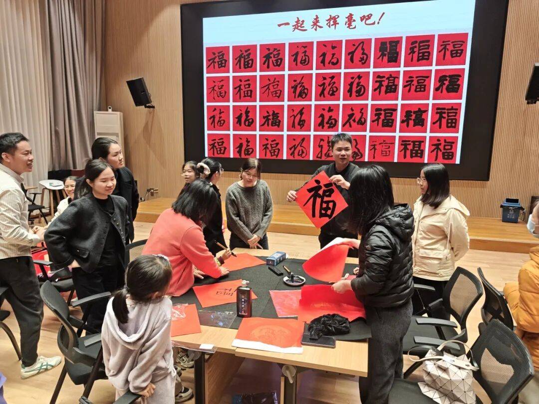 活动伊始,厚艺书法李老师结合马年新春氛围,明确了本次课程的核心——笔墨迎春,马上有福,让大家在学写福字的过程中,感受毛笔书法的魅力,定格对新年的美好期许。课堂上,李老师兼顾零基础学员的学习需求,从握笔姿势、运笔技巧入手,手把手指导大家纠正书写误区。