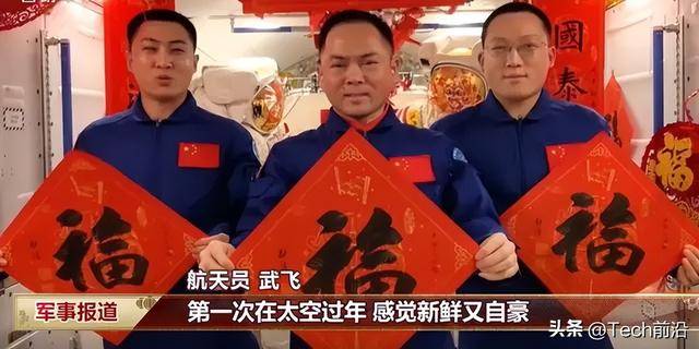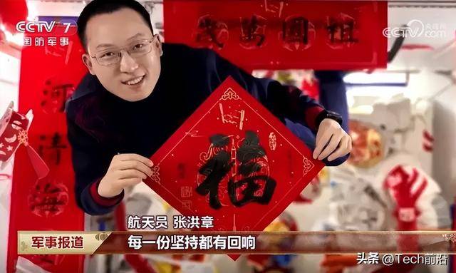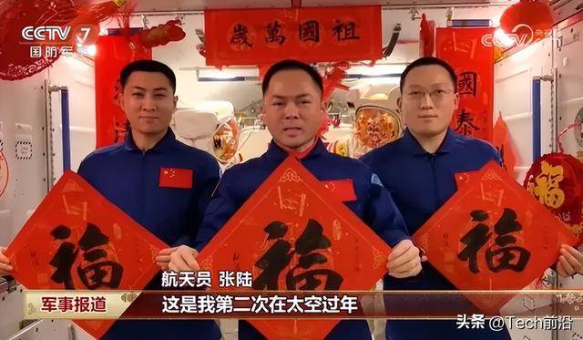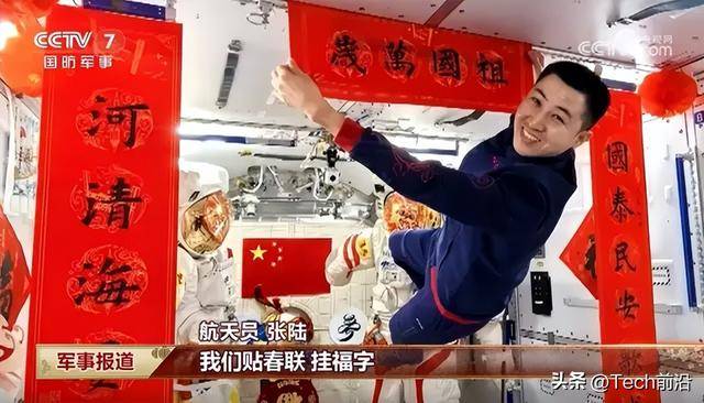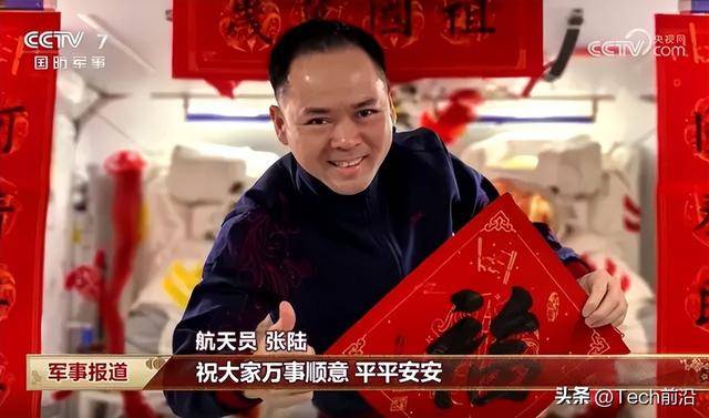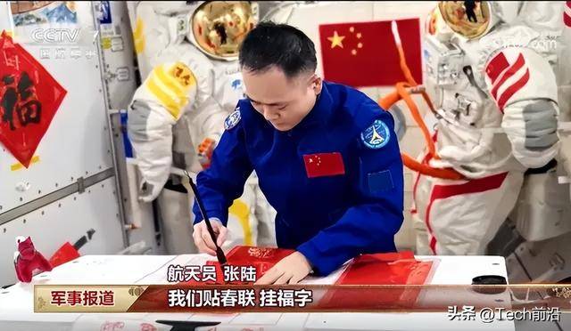 从公布的画面中,我们的空间站“变装”了,里面都是红红火火的“皮肤”,挂上了“福”字和春联,而航天员张陆也用“飞天毛笔”写下福字。